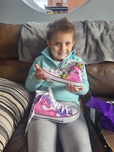 A flamingo it was, then! Lacie was keen to have this lovely bird on her shoes, along with a unicorn. Super Artist Kat made a fab job of them, as you can see.